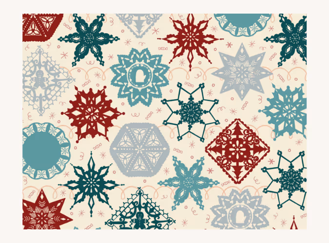 About the Art: Crafted Together combines the delicate textures of paper snowflakes and doilies in a bright, illustrative vector style. The piece captures the warmth and simplicity of crafting traditions shared among families and friends during the holidays.