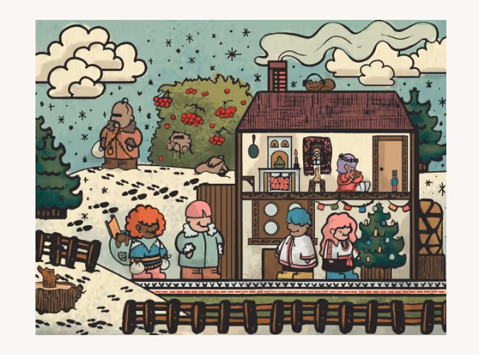Lisova was inspired by her upbringing as a first-generation Ukrainian American and the warmth of her family’s holiday traditions. Through this work, she seeks to honor those traditions and invite others to share in that sense of nostalgia and connection. The piece offers a glimpse into the joy and togetherness her parents worked to preserve.